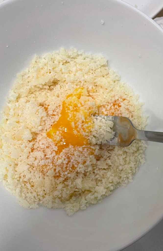 I grated the grana padano with a fork because I did not have a grater – it was tough work but still looked and tasted good!